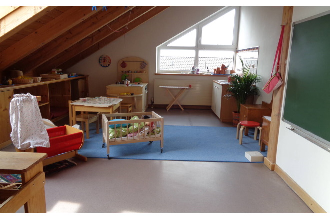 Beschäftigt werden drei Erzieher/innen, 2 Kinderpflegerinnen, eine Grundschullehrerin im Erziehungsdienst und eine Kita-Helferinnen.