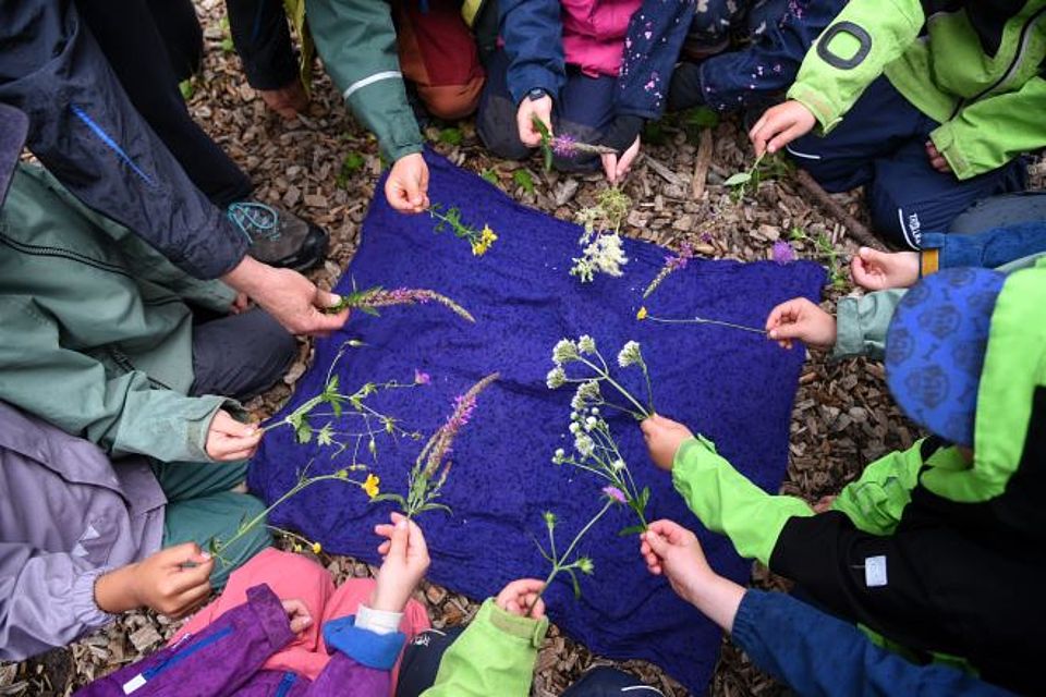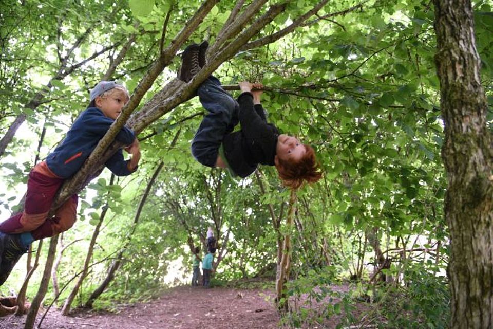Waldkindergarten – das heißt Toben, Spielen, Singen, Klettern, Malen, Matschen, Vorlesen Hüpfen, Beobachten - und noch so viel mehr! Und das Ganze täglich und bei jedem Wetter im Wald und in der Natur. Der Wald bietet vielfältigste Bewegungs- und Wahrnehmungsanreize, die Fantasie und Kreativität beflügeln. Mulden, Hügel und Baumstämme bieten Platz für viele Abenteuer. Die Kinder können in ihrem eigenen Tempo ihre Grenzen austesten, Mut schöpfen und Selbstvertrauen gewinnen. Als Spielmaterial stehen uns quasi unbegrenzt Naturmaterialien wie Moos, Stöcke, Blätter zur Verfügung.